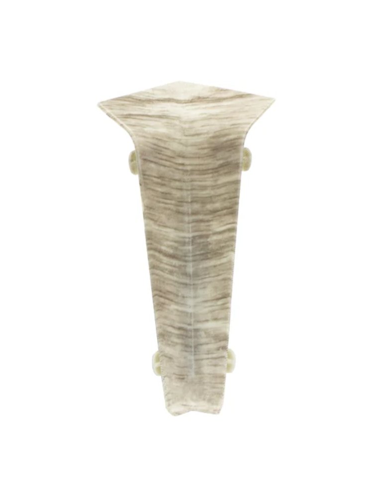 Декоративный внутренний угол Quadro с текстурой "Дуб Альпака" придаст вашему интерьеру завершённый и эстетичный вид, аккуратно скрывая стыки напольных плинтусов в углах. Он предназначен для соединения плинтусов толщиной до 80 мм, обеспечивая лёгкость монтажа без использования дополнительных инструментов и соблюдение геометрии углов помещения — идеален для жилых и коммерческих пространств.
