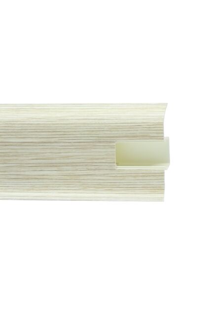 Утонченный и высокий профиль (58 мм) с острыми краями. Благодаря съёмной панели монтаж электрических проводов, покраска стен, оклеивание обоями возможны без демонтажа профилей. Конструкция позволяет монтировать и демонтировать плинтус без использования инструментов. Существует возможность размещения большого количества проводов, в том числе после монтажа. Специальная двухслойная технология: помимо слоя краски, дополнительно покрывается специальным лаком, благодаря чему его покрытие становится однородным, а это дополнительно защищает изделие от разного вида механических повреждений и вредного воздействия лучей УФ. Благодаря эластичному материалу, плинтус идеально прилегает даже к неровностям стен и полов. Прочный внешний угол 58 мм, дуб амаро, для оформления стыков плинтусов. Легкий монтаж, высокая износостойкость, эстетичный внешний вид.