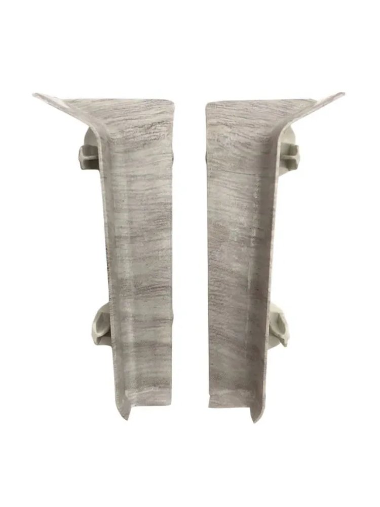 Утонченный и высокий профиль (80 мм) с острыми краями. Благодаря съёмной панели монтаж электрических проводов, покраска стен, оклеивание обоями возможны без демонтажа профилей. Конструкция позволяет монтировать и демонтировать плинтус без использования инструментов. Существует возможность размещения большого количества проводов, в том числе после монтажа. Специальная двухслойная технология: помимо слоя краски, дополнительно покрывается специальным лаком, благодаря чему его покрытие становится однородным, а это дополнительно защищает изделие от разного вида механических повреждений и вредного воздействия лучей УФ. Благодаря эластичному материалу, плинтус идеально прилегает даже к неровностям стен и полов. Внутренний угол для плинтуса Quadro, имитация дуба, 80 мм, крепкий пластик, комплект 2 шт., легко устанавливается, устойчив к износу и влаге.