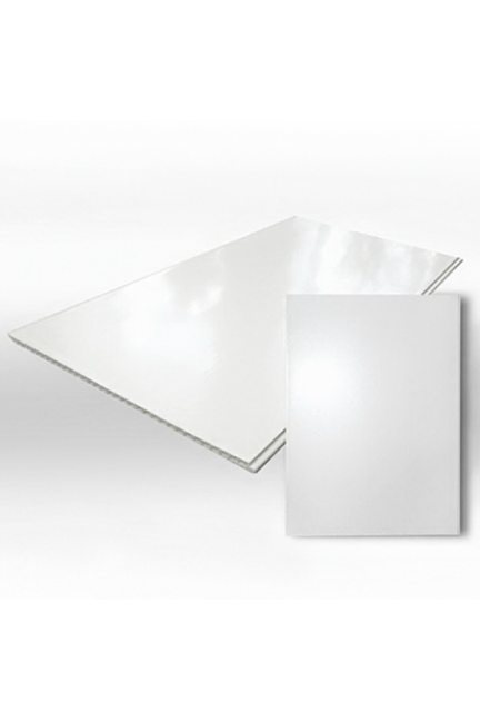 Белая глянцевая ПВХ панель 3 м легко монтируется, устойчива к влаге и загрязнениям, подходит для стен и потолков в любых помещениях.