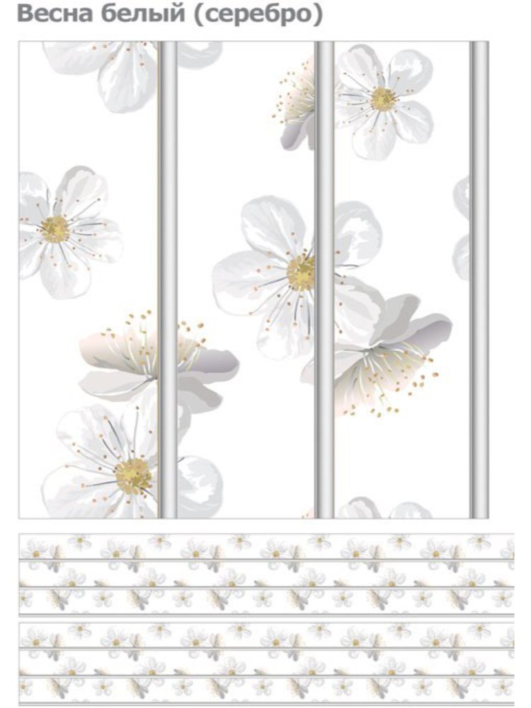 Панель ПВХ потолочная 2,7*0,24*0,008 Весна белый серебро UNIQUE