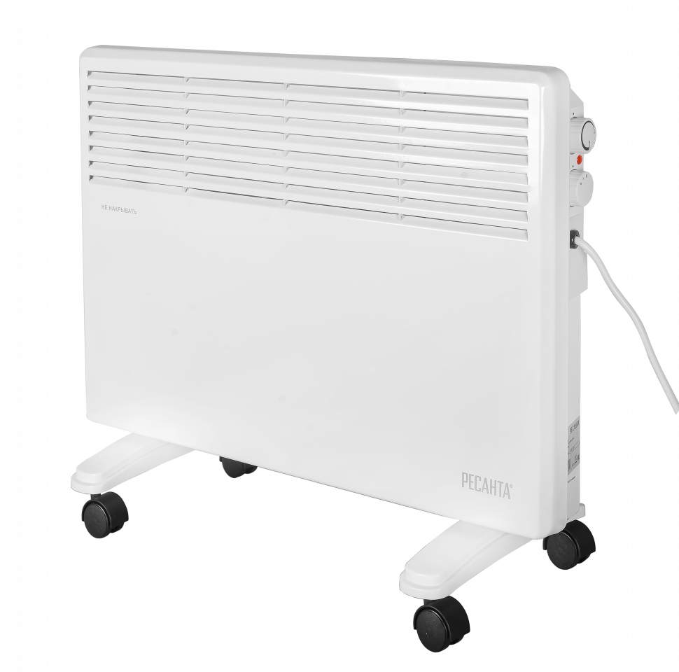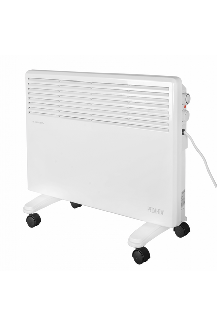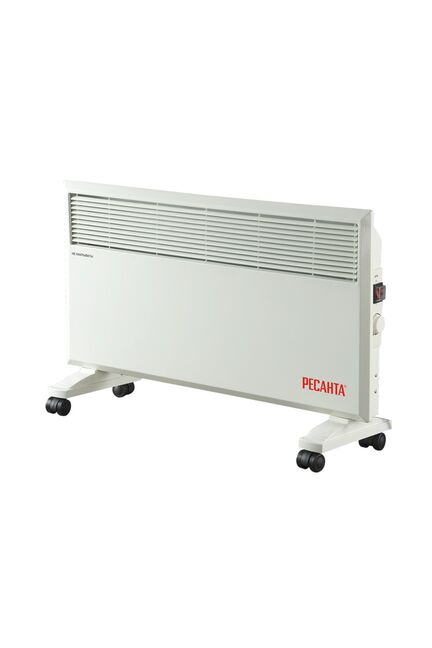 Конвектор Ресанта ОК-1700 представлен в белом дизайне с возможностью настенного или напольного монтажа. Кронштейн для стены и устойчивые ножки-опоры с колесиками поставляются в комплекте. ТЭН с регулируемым термостатом позволяет увеличивать мощность до 750 и 1700 Вт, что позволяет оснащать комнату до 20 кв.м.