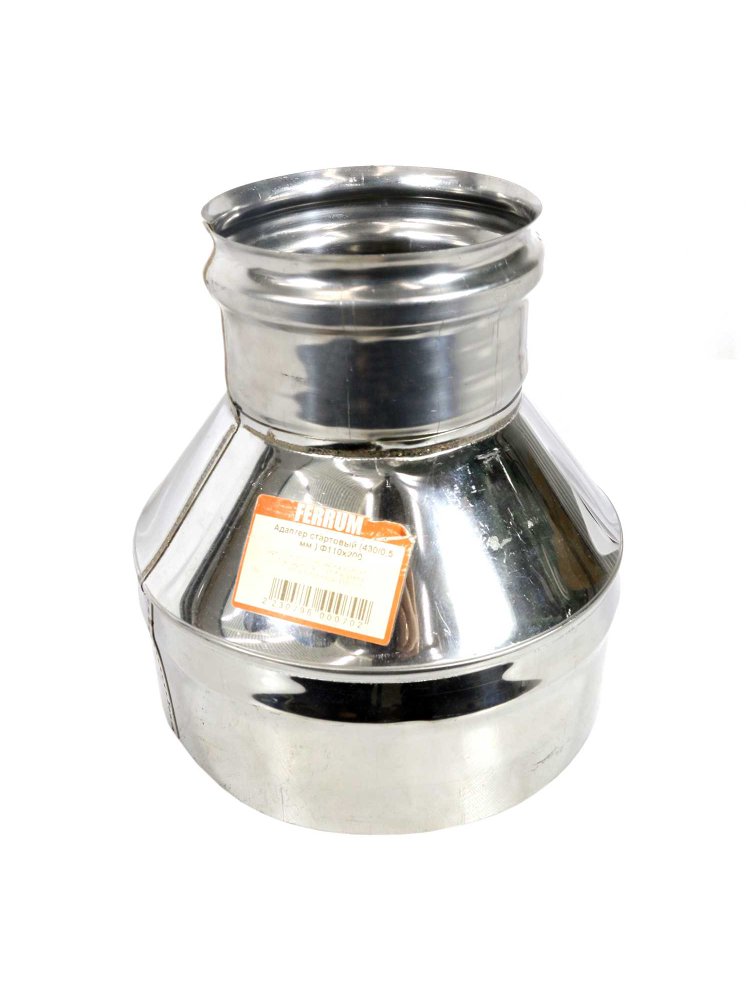 Нержавеющий стартовый адаптер 430/0,5 мм, Ф110×200, для герметичного и надежного соединения элементов дымохода и вентиляции.