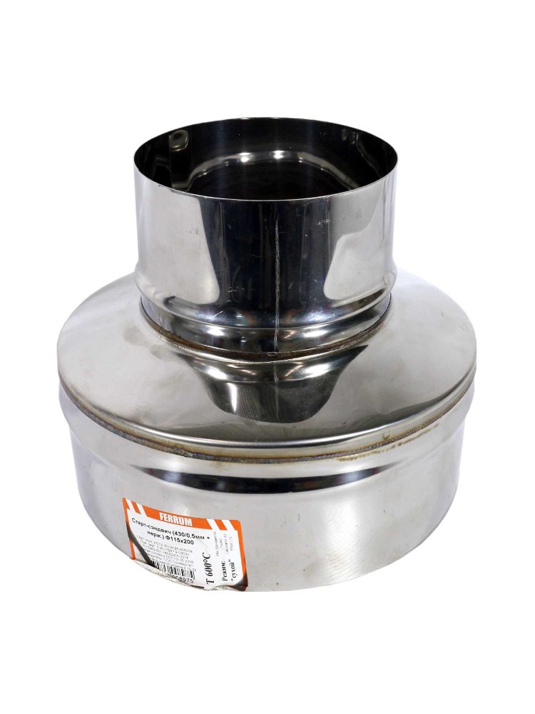 Жаропрочный адаптер для дымохода 115 мм, надежная герметизация и простой монтаж, подходит для печей, котлов и каминов любых конструкций.
