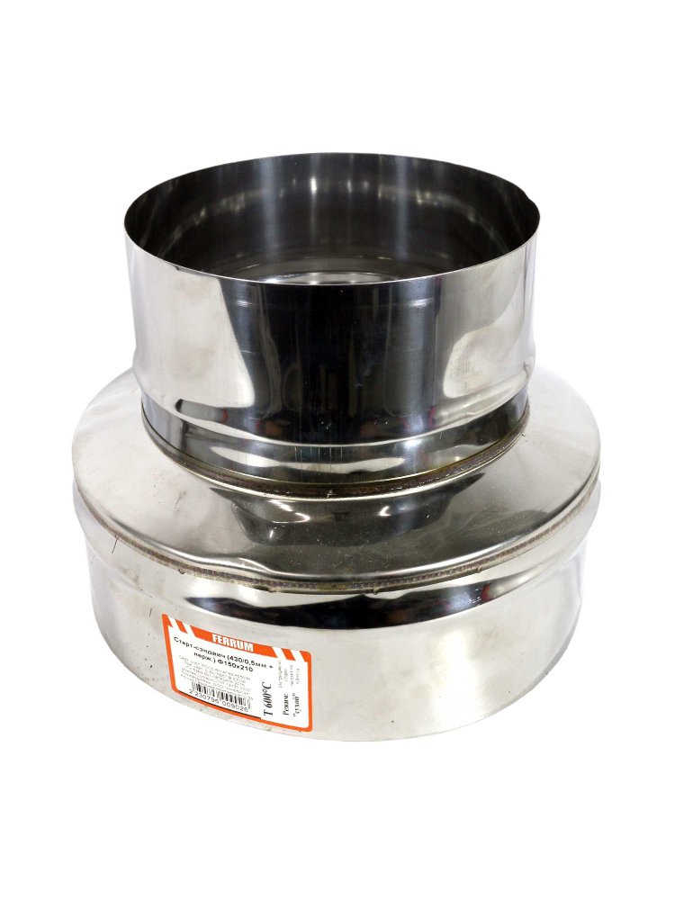Прочная нержавеющая сталь 0,5 мм, диаметр 150 мм, высота 210 мм — для стартового соединения сэндвич-дымохода, простой монтаж.