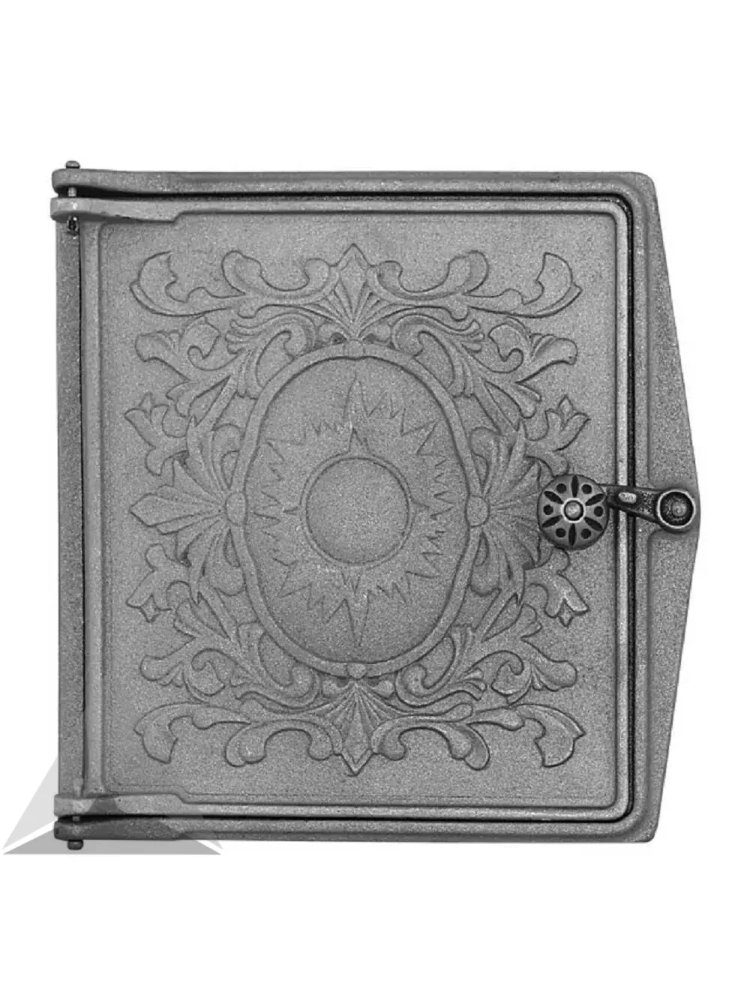 Чугунная топочная дверца 270×230 мм выдерживает высокие температуры, плотно прилегает, защищает от искр и обеспечивает безопасность.