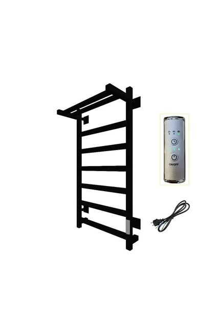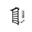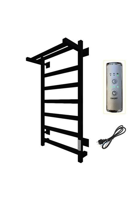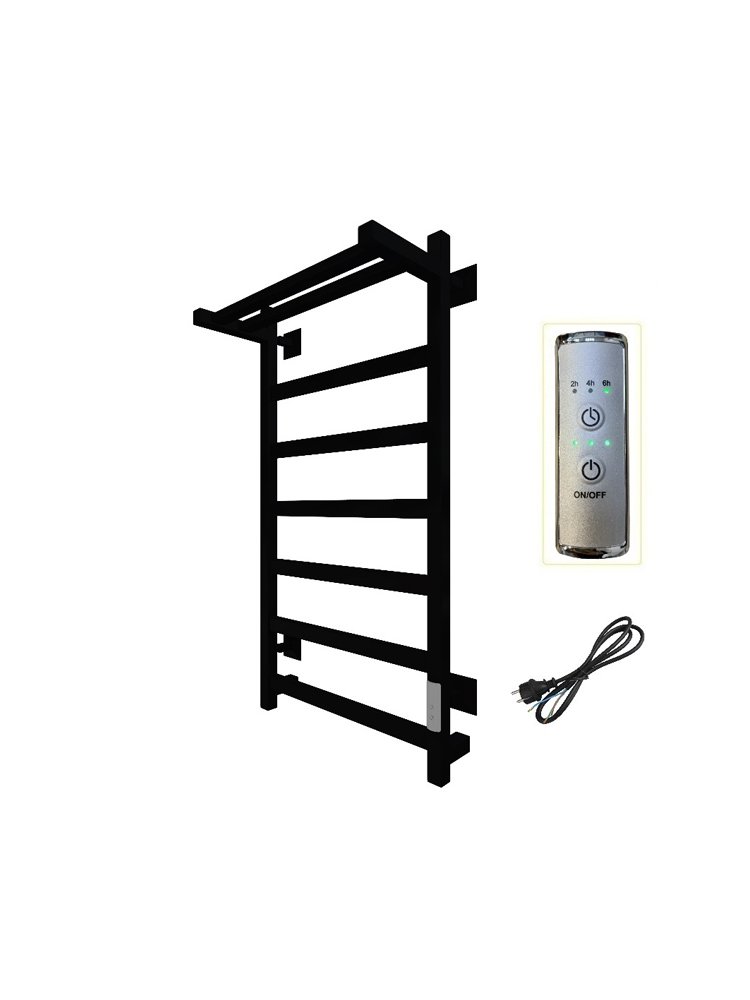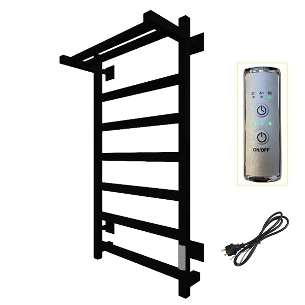 Изделие производится из углеродистой стали. Вертикальные трубы d-32 мм, для горизонтальных вставок используется труба d-18 мм. Нагревательным элементом в полотенцесушителе является греющий кабель — аналог «теплого пола», кабель заправляется внутрь каждой трубы и передает тепло на поверхность изделия. Во включенном состоянии постоянно поддерживается температура 50-60 градусов. Полотенцесушитель снабжен панелью управления. Кнопка включения/выключения и таймер на 2/4/6 часов , который позволяет включать изделие на ограниченное время. Эта функция дает возможность экономить электричество. Черный водяной полотенцесушитель 800×500 мм: стильный дизайн, антикоррозийное покрытие, высокая теплоотдача, легкая установка для любого санузла.