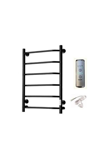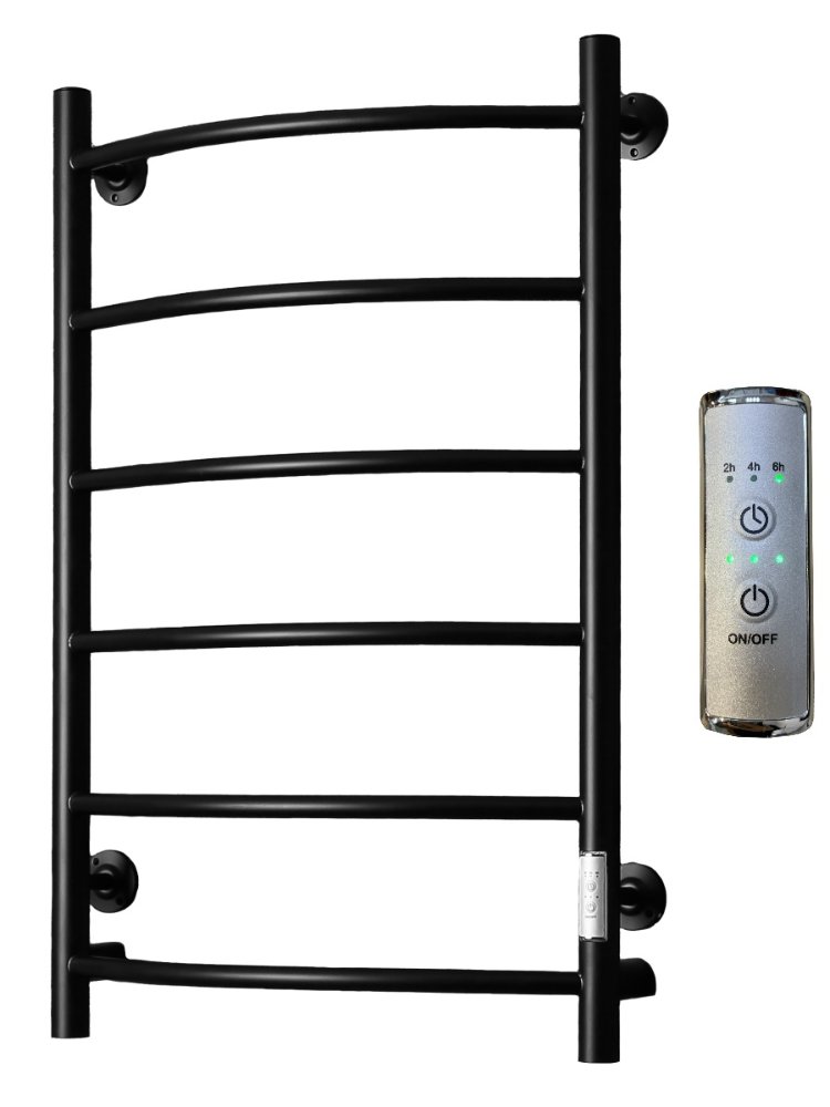 Стальной полотенцесушитель 80×50 см, 5 перекладин, черное антикоррозийное покрытие, подходит для ГВС/отопления, стиль и надежность для любой ванной.