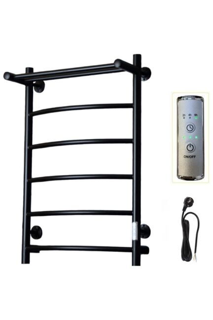 Стильный черный водяной полотенцесушитель 800×500 мм, эффективный обогрев, 5 перекладин, современный дизайн и простота монтажа для вашей ванной.