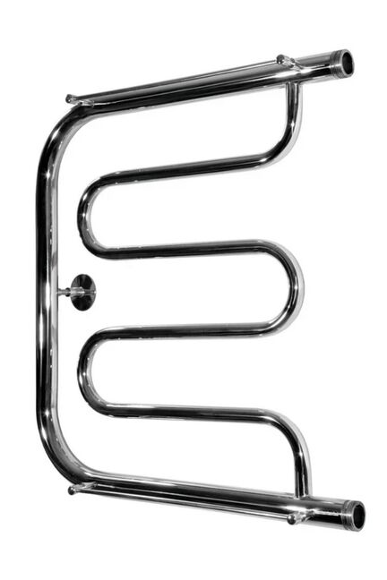 Водяное боковое подключение, Размер подключения 1", 4 вставки, Sотапл. пом.<2,1м², с полочкой Компактный водяной полотенцесушитель 500x500 мм для быстрой сушки полотенец, экономит место и энергию, устойчив к коррозии и прост в установке.