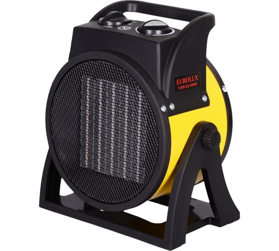 Тепловая электрическая пушка Eurolux ТЭПК-EU-3000K керамический нагревательный элемент, круглая предназначена для вентиляции и обогрева жилых и производственных помещений, складов, гаражей, а также для обогрева и сушки в строительстве. Прибор относится к тепловым пушкам круглого типа. Нагревательный элемент - керамический. Данная модель рассчитана на питание от электросети переменного тока частотой 50 Гц, номинальным напряжением 220-230В (однофазная). Устанавливается на полу.