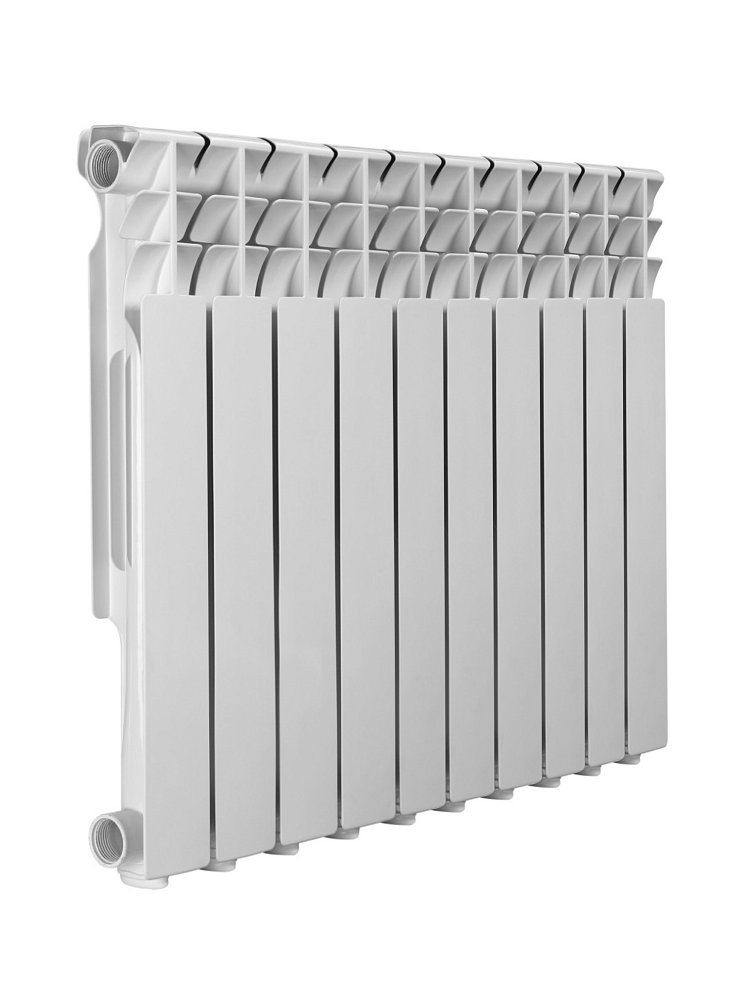 Алюминиевый радиатор 10 секций, мощность 1210 Вт, быстрый обогрев, устойчив к коррозии, давление до 16 атм, компактный размер, легкий монтаж.