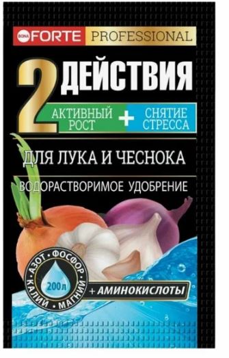Подходит для всех видов чеснока и лука: репчатого, порея, батуна, слизуна, шалота, шнитта, черемши. 2 в 1 Удобрение - стимулирует рост + Аминокислоты - снимают стресс. Можно использовать в сухом или жидком виде. Полностью водорастворимое удобрение. Экономично: 1 пакетик на 200 л воды. Стимулирует обильное плодоношение