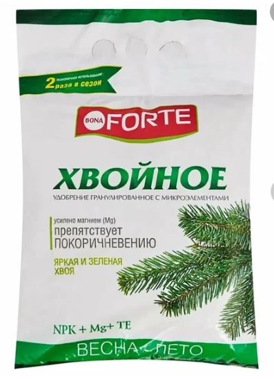Подходит для елей, сосен, кипарисов, тиса, кедра, можжевельника, туи, пихты, лиственницы и других хвойных растений. Усилено магнием. Препятствует покоричневению хвои. Предотвращает осыпание иголок. Поддерживает зеленый цвет хвои. Подготавливает растение к успешной зимовке