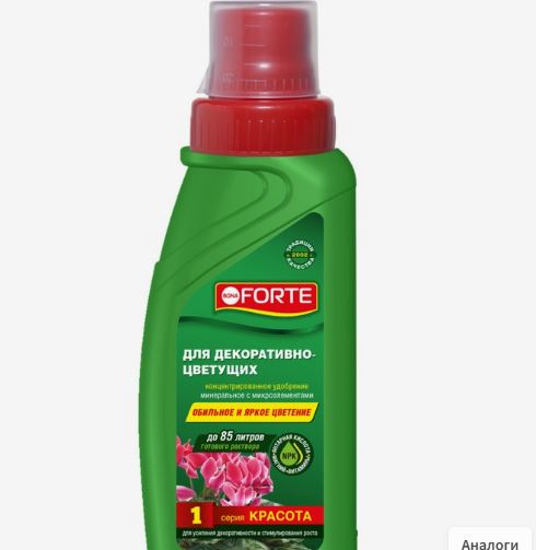 Подходит для афеляндры, антуриума, бальзамина, бегонии, гардении, герани, гибискуса, камелии, кливии, спатифиллума, фиалки, фуксии, хойи, цикламена, а также маргаритки, петунии, роз и цветущих луковичных растений. Обеспечивает продолжительное и пышное цветение. Стимулирует образование многочисленных бутонов. Придает насыщенную окраску цветков. Ускоряет начало цветения Высококонцентрированное минеральное удобрение Экономичный расход: одного флакона 285 мл хватает до 850 поливов.
