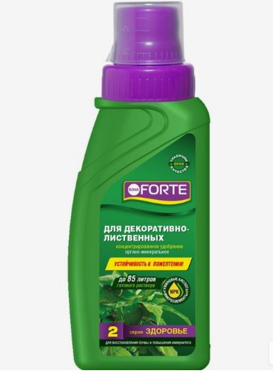 Подходит для алоказии, аспарагуса, диффенбахии, драцены, замиокулькаса, калатеи, кротона, колеуса, маранты, монстеры, плюща, сансевиерии, фатсии, фикусов, финика, филодендрона, ховеи, юкки и многих других. Защищает от сбрасывания листьев. Препятствует пожелтению листьев. Стимулирует корнеобразование. Обеспечивает яркую окраску листьев Высококонцентрированное органо-минеральное удобрение Экономичный расход: одного флакона 285 мл хватает до 850 поливов.
