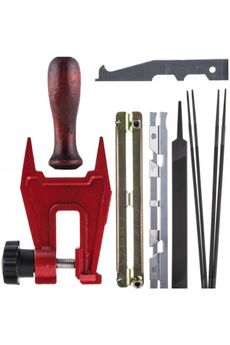 В данной категории доступны следующие виды товаров: круглые и плоские напильники, универсальные и специализированные держатели, шаблоны для контроля углов заточки, станки ручного и электрического типа, зажимы, направляющие, калибры и вспомогательные аксессуары. Вы без труда подберете оснастку для всех популярных брендов и калибров цепей.