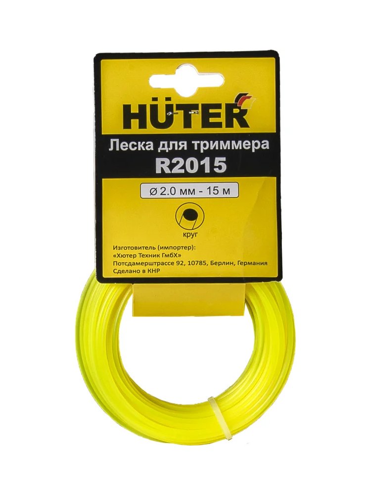 Профессиональная леска HUTER R2015 для триммеров HUTER GET-1200SL. Классическая круглая леска 2,0 мм, длина 15 м, устойчива к износу, легко справляется с травой и сорняками, подходит для большинства триммеров.