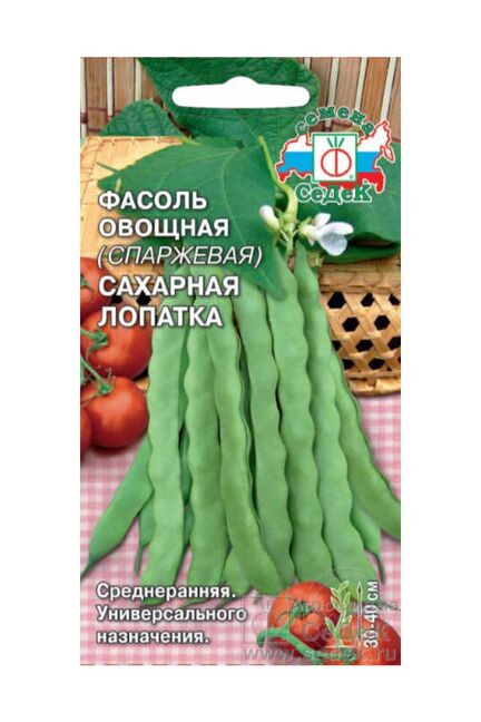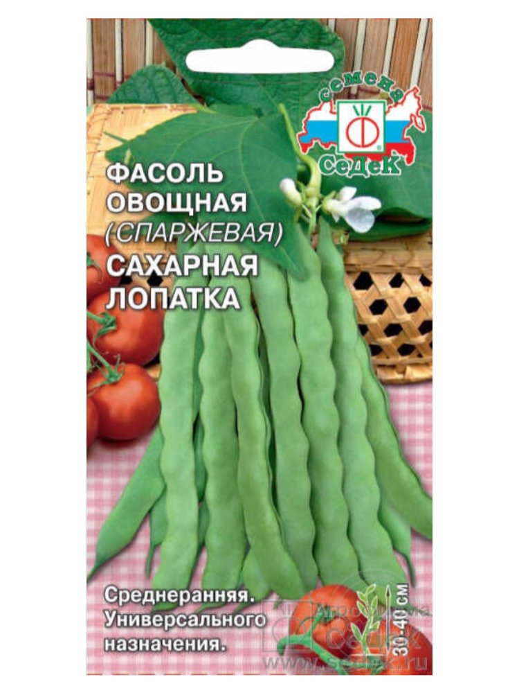 Фасоль овощная Сахарная лопатка, 5 г, СеДеК – раннеспелый сорт с нежными стручками длиной 10-12 см. Урожай через 45-50 дней, устойчив к болезням.