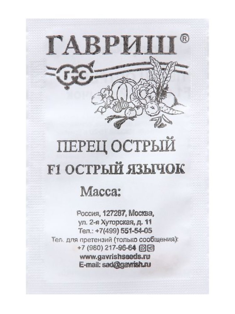 Семена Перец Острый язычок F1 0,2гр. б/п Гавриш