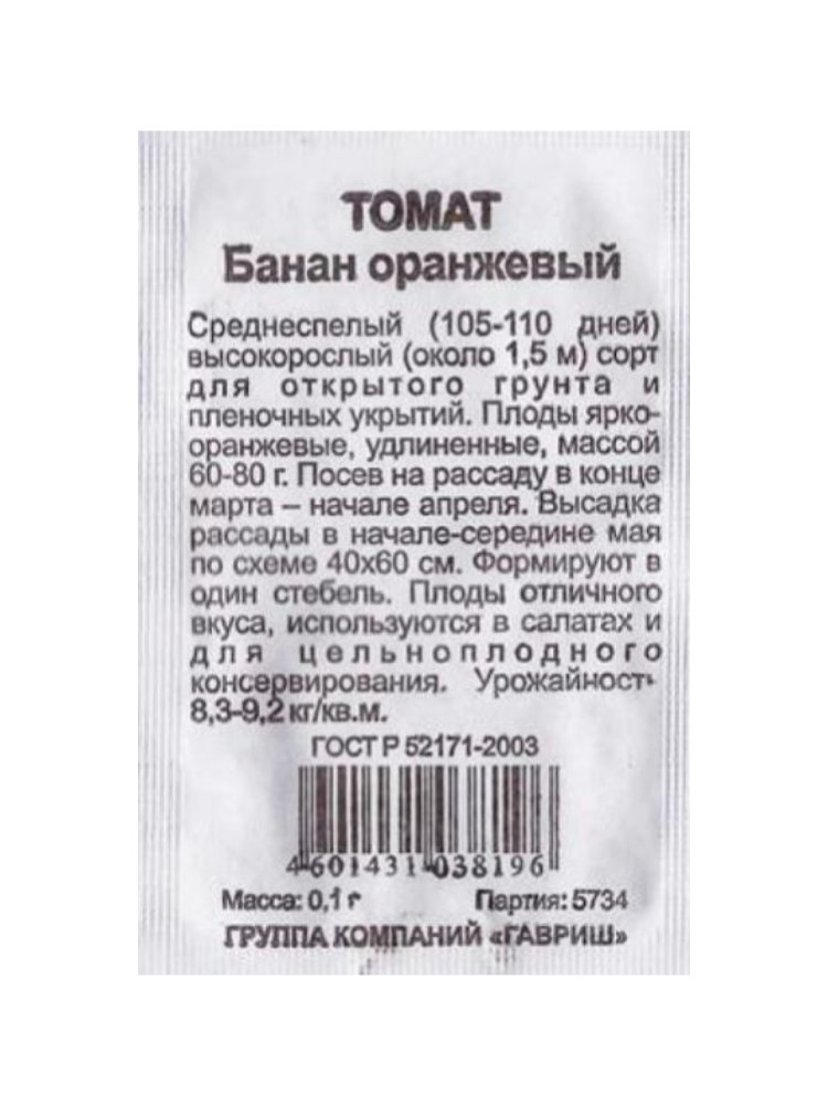 Семена Томат Банан оранжевый б/п Гавриш в Спасск-Дальний
