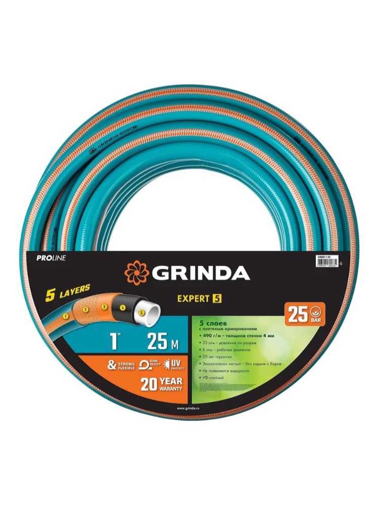 Надежный армированный пятислойный шланг длиной 25 м – идеальный выбор для интенсивного и длительного полива вашего сада, огорода или теплицы. Он отлично подойдет для использования на дачных и строительных участках, сельском хозяйстве и при проведении различных работ, связанных с транспортировкой воды.