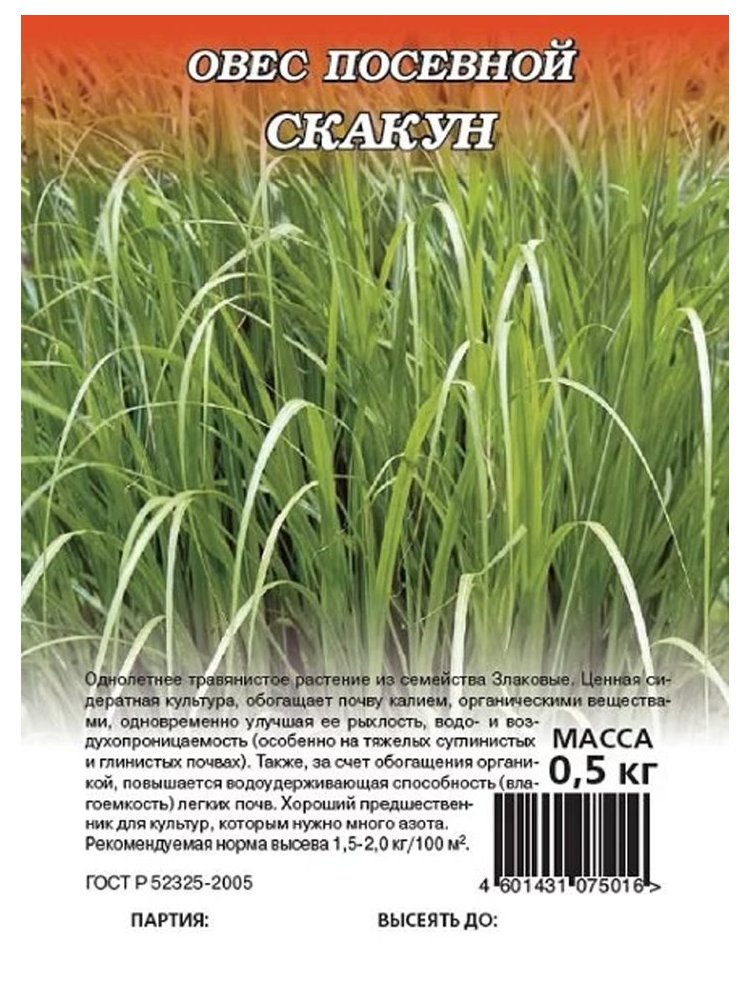 Сидерат Овес посевной Скакун 0,5кг. Гавриш