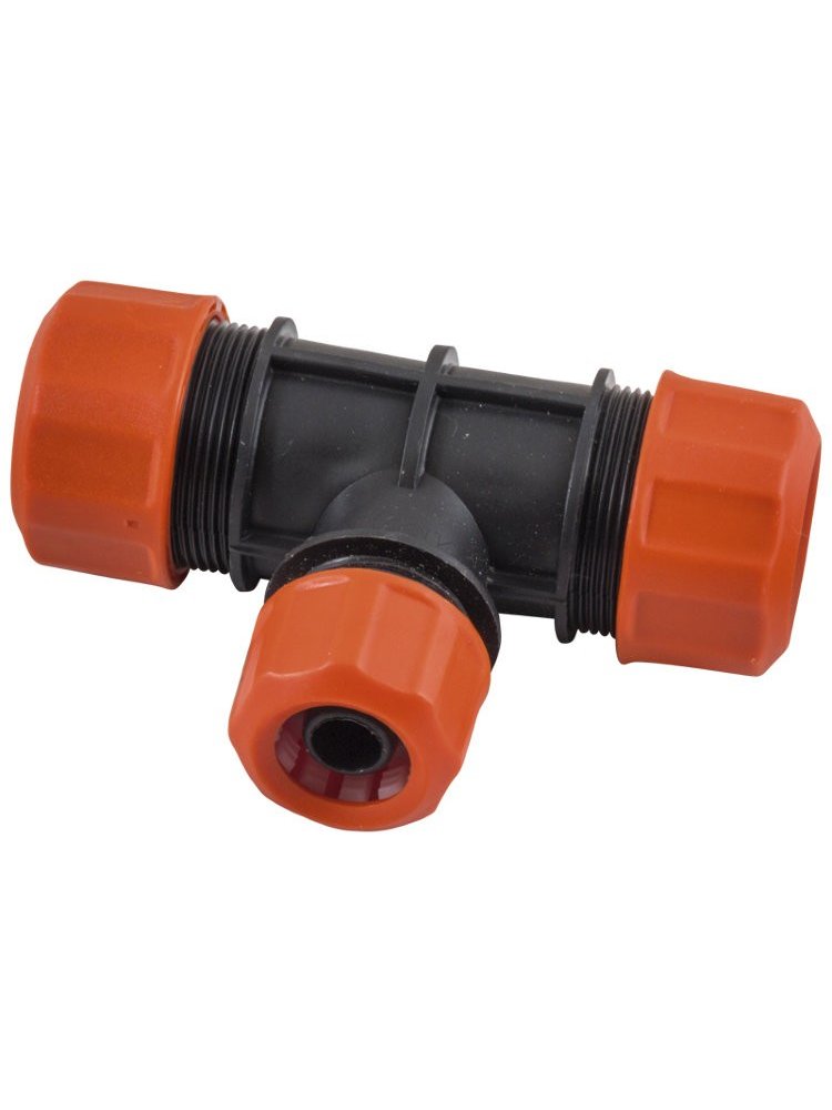 Надежный цанговый тройник предназначен для быстрого и герметичного соединения трех участков трубопровода диаметром 1/2". Применяется в системах полива, водоснабжения и монтаже инженерных коммуникаций, облегчая разветвление потока воды там, где это необходимо.