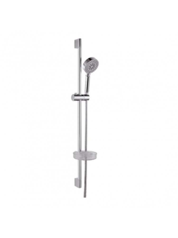 Стойка - нержавейка, держатель- цинк, держатель для мыла - пластик, шланг для лейки - нержавейка, лейка -3 режима, длина штанги 670мм Три режима душа, удобная мыльница, хромированная стойка и гибкий шланг обеспечивают комфорт и надежность для современной ванной.
