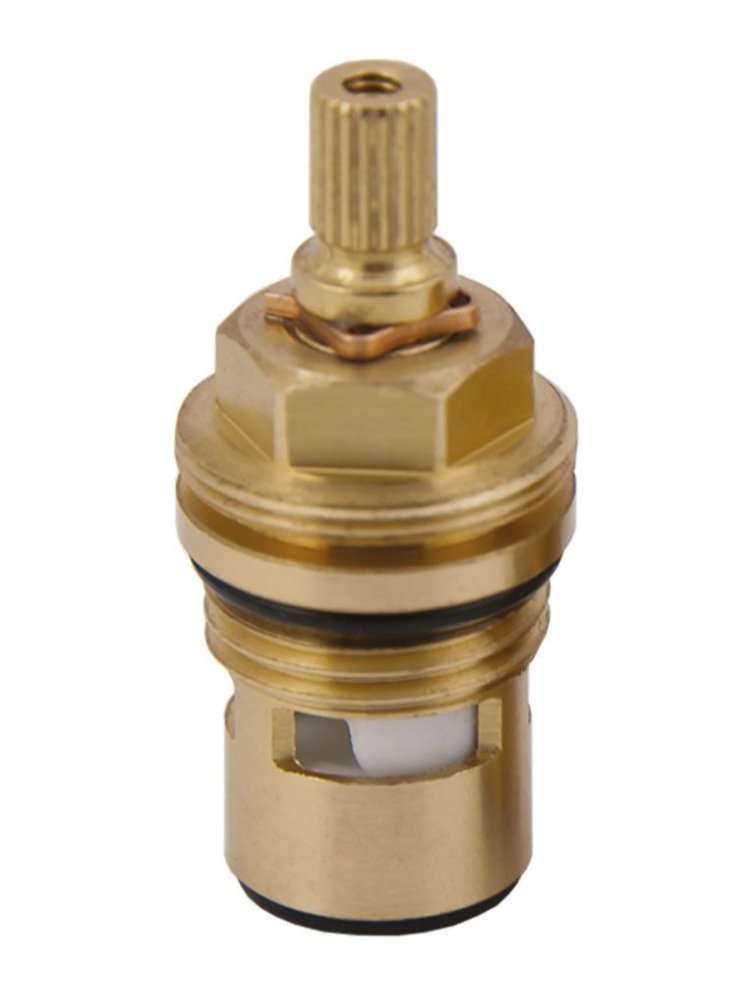 Идеальное решение для надежной замены изношенных элементов смесителя — кран-букса 1/2" с резиновой прокладкой и 20-шлицевым штоком. Это универсальный элемент для душевых, умывальников и кухонных смесителей, обеспечивающий плавную регулировку потока воды и герметичность соединения.