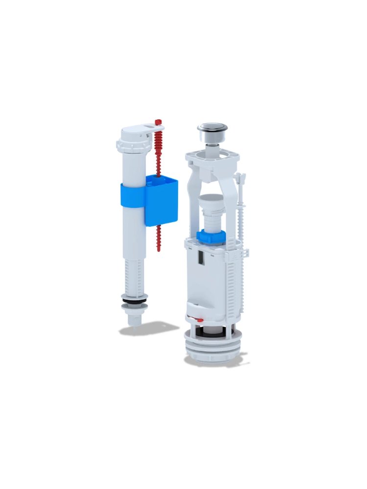Прочный комплект для унитазов: надежная пластиковая арматура с хромированной кнопкой, легкий монтаж, плавная работа, защита от коррозии.