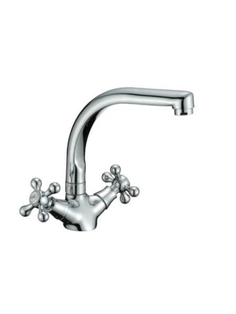 Двухвентильный смеситель с латунным корпусом, хромированным покрытием и поворотным изливом — точный контроль подачи воды для вашей кухни.