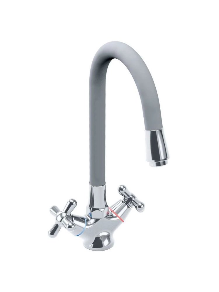 Современное и надежное решение для вашей кухни — стильный смеситель с двойным рычагом и гибким силиконовым изливом в сером цвете гармонично впишется в любой интерьер и обеспечит комфорт при мытье посуды и овощей. Благодаря двуручному управлению вы легко регулируете температуру и напор воды, а гибкий излив увеличивает рабочую зону и облегчает уход за мойкой.