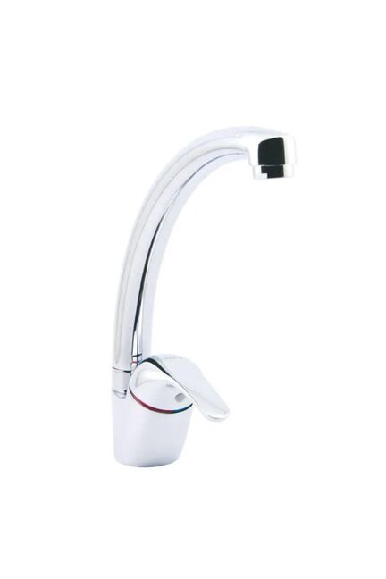 Качественный смеситель с однорычажным управлением, латунным корпусом и хромированным покрытием, для быстрой и удобной установки на кухне.