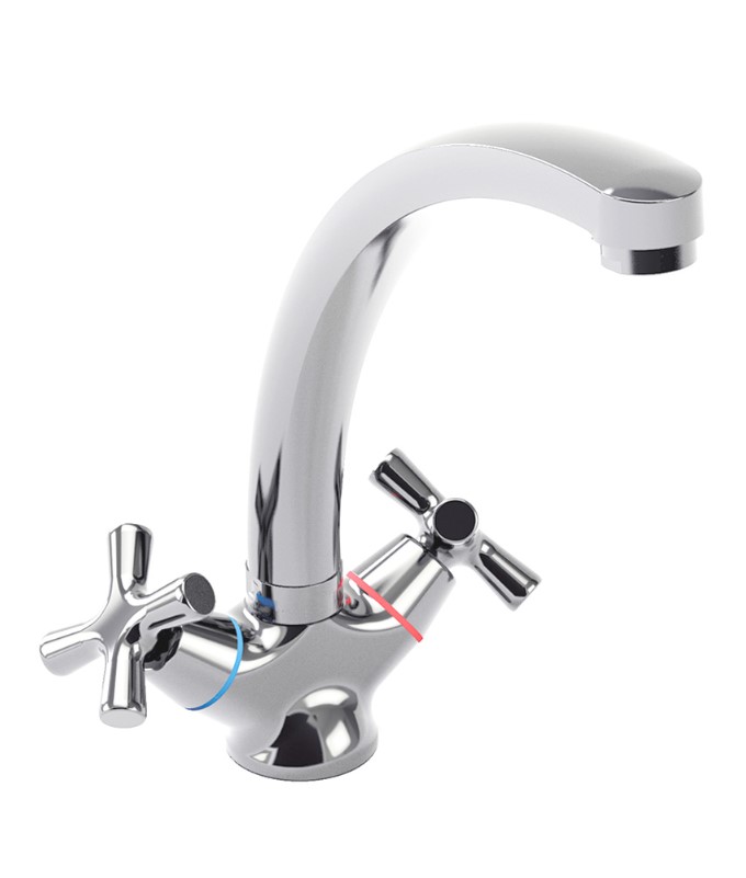 Гарантия: 5 лет Механизм:Латунные трехпроходные вентили с керамическими дисками 180°. Материал:Латунь Двухрычажный латунный смеситель для кухни с хромированным покрытием, поворотным изливом и легкой установкой для удобного использования.