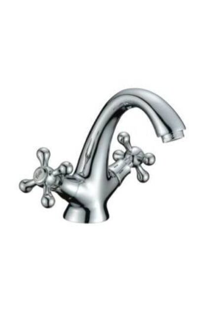 Надежный двухвентильный смеситель с латунным корпусом и хромовым покрытием, простая установка и удобное управление для вашего умывальника.