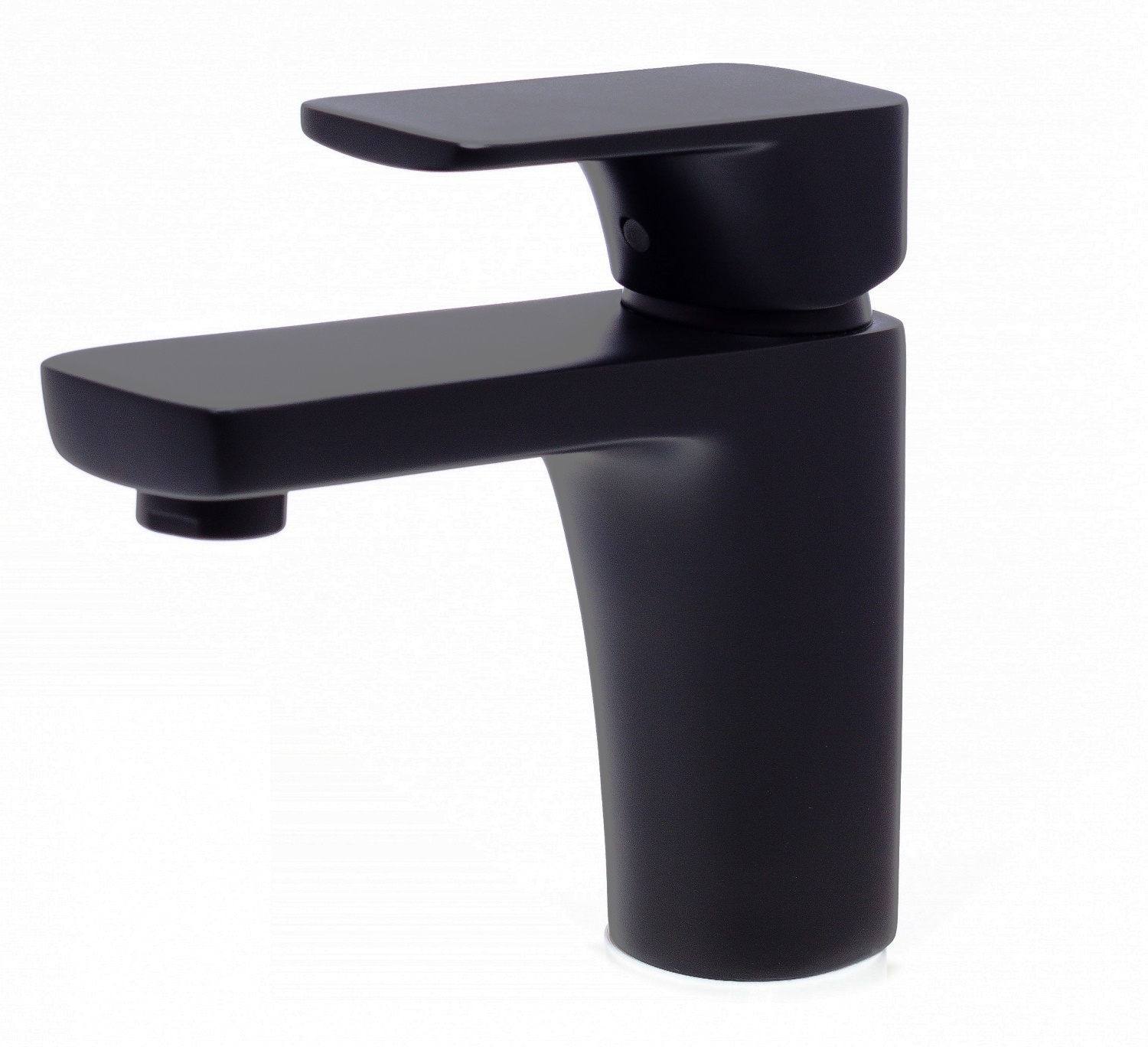 Черный смеситель с однорычажным управлением, латунным корпусом и керамическим картриджем. Стиль, долговечность, простая установка.