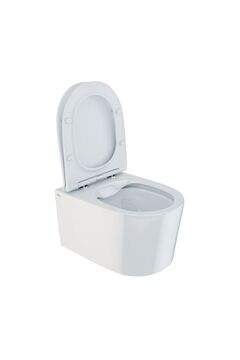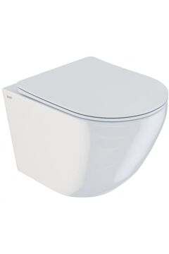 Подвесной унитаз 55×35×37,5 см безободковый, белый, устойчив к загрязнениям, универсальный монтаж, прост в уходе и экономит пространство.