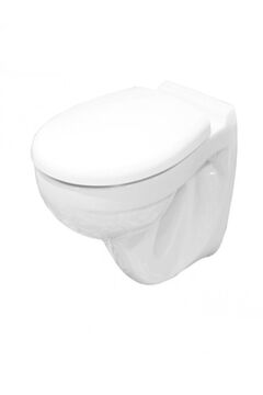 Подвесная чаша 535×360×362 мм с горизонтальным выпуском, стильным дизайном; легко моется, не занимает место, без сиденья в комплекте.