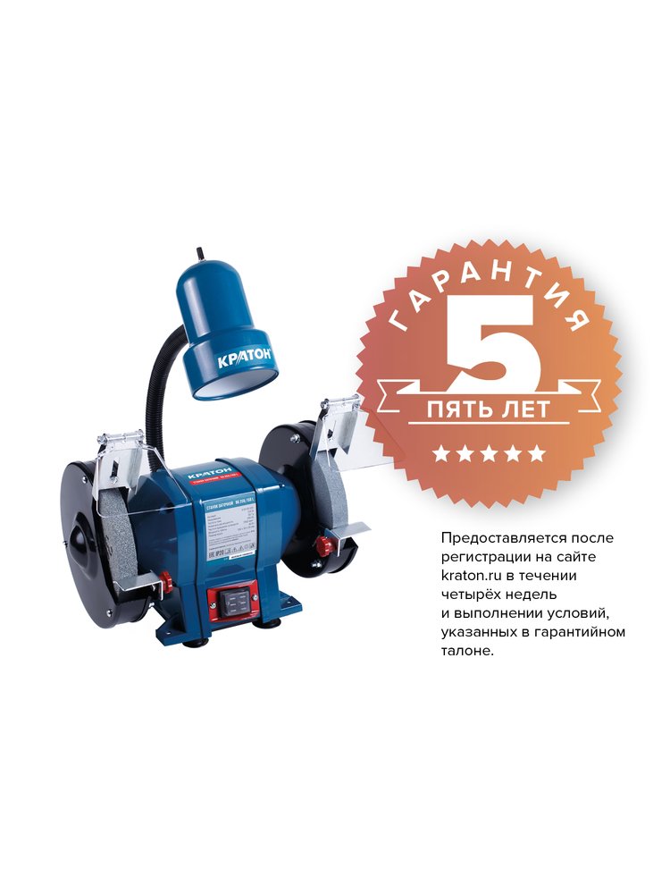Станок заточной КРАТОН BG 250/150L (250 Вт, круг 150х20х32 мм, 2 950 об/мин) лампа