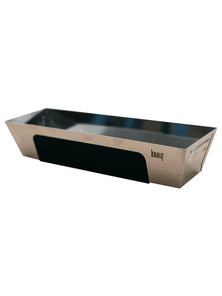 Короб / ванночка для шпатлевки КНАУФ из нержавеющей стали - применяется для замешивания шпаклевки. Емкость из нержавеющей стали для замешивания шпаклевки позволяет затворять и обрабатывать шпаклевку в оптимальном для шпаклевания швов количестве. Короб удобно держать в одной руке благодаря его форме, размеру и прорезиненной подложке. Вытянутая форма короба для шпатлевания КНАУФ позволяет равномерно забирать раствор шпателем и качественно наносить его на поверхность. Острые края короба Knauf позволяют очищать шпатель об них. Материал шпаклевочного короба КНАУФ – нержавеющая сталь, что увеличивает срок использования данного изделия, а также исключает следы попадания от ржавчины в раствор, как если бы это было обычное железо. Нержавеющий корпус, плавное нанесение шпаклевки, удобно держать, износостойкий, легко чистится, подходит для любых типов поверхностей.
