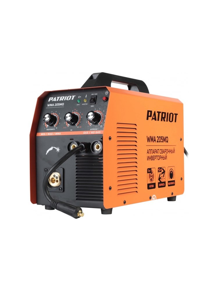Сварочный инверторный полуавтомат PATRIOT WMA 205MQ MIG/MAG/MMA, полуавтоматическая сварка в среде 605302155 предназначен для: Полуавтоматической сварки в среде газа (MIG/MAG) стальной проволокой, Полуавтоматической сварки флюсованной проволокой (Flux) без газа. Сварка электродом (MMA) Особенности: Регулятор напряжения Регулятор сварочного тока Переключатель режимов MIG/MAG- MMA Кнопка протяжки проволоки Индикаторы питания и перегрева Струйная сварка MIG/MAG до 200А, поддержка MMA, легкий, защищён от перегрева. Для ремонтных и строительных работ, прост в настройке.