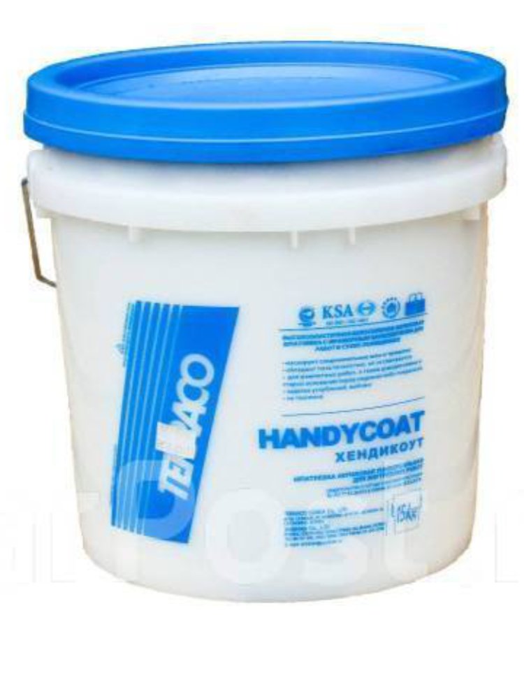 HANDYCOAT (Террако) - готовая к применению, универсальная высокоукрывистая, акриловая шпатлёвка для внутренней отделки. Это стандартный сорт для стандартных целей, подходит для любых работ кроме специализированных. Можно применять на большинстве строительных поверхностей, включая дерево. Хэндикоут специально предназначен для ремонта и восстановления внутренних поверхностей, как старых, так и новых, перед покраской. Хэндикоут заполняет стыки, тонкие трещины и т.д., обладает пластическими свойства Шпатлевка Хэндикоат Terraco 15 кг (Корея) – готовая акриловая смесь для выравнивания стен и потолков внутри помещений. Отличная адгезия, легко шлифуется.