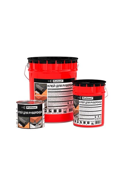 Гидроизоляция и приклеивание рубероида типов РПК, РПП, РКК, а также рулонных материалов с защитным покрытием нижнего слоя из песка марок Стеклоизола (не допускается пленочное покрытие) к бетонным, цементно-песчаным и другим поверхностям. Также применяется  для герметизации и промазки швов,  мест примыканий рулонных материалов. Надёжный битумно-полимерный клей для рубероида: высокая адгезия, влагостойкость, морозостойкость, готов к применению, экономичный расход.