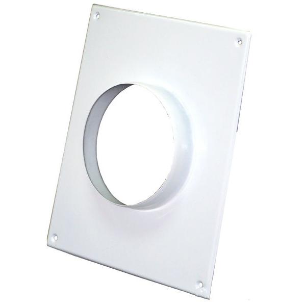 Площадка торцевая стальная: предназначена для крепления круглых воздуховодов к каналу дымохода от газового оборудования различных типов; настенный монтаж при помощи шурупов; материал: тонколистная сталь, покрытая полимерной эмалью; размеры: высота 23,6см, ширина 19,6см, раст.между отверстиями креплений: вертик.21,5см, горизонт.17,5см,Φ внутр.отверстия 15см, цвет: белый; Воздуховод крепится к фланцу площадки хомутом!