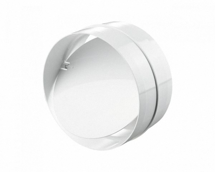 Соединитель круглых каналов с обратным клапаном: монтируется с круглым воздуховодом, оснащен гравитационным клапаном, цвет белый; Φ160мм Герметичный соединитель D160 мм с обратным клапаном для вентиляции, предотвращает обратный ток воздуха и удобен для быстрого монтажа.