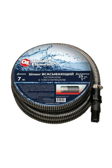 Шланг садовый всасывающий Quattro Elementi используется совместно с садовыми поверхностными насосами и автоматическими насосными станциями для водозабора. Шланг изготовлен из высококачественного ПВХ. Имеет спиральное армирование стальной проволокой. Оснащен обратным клапаном и резьбовым фитингом 1".