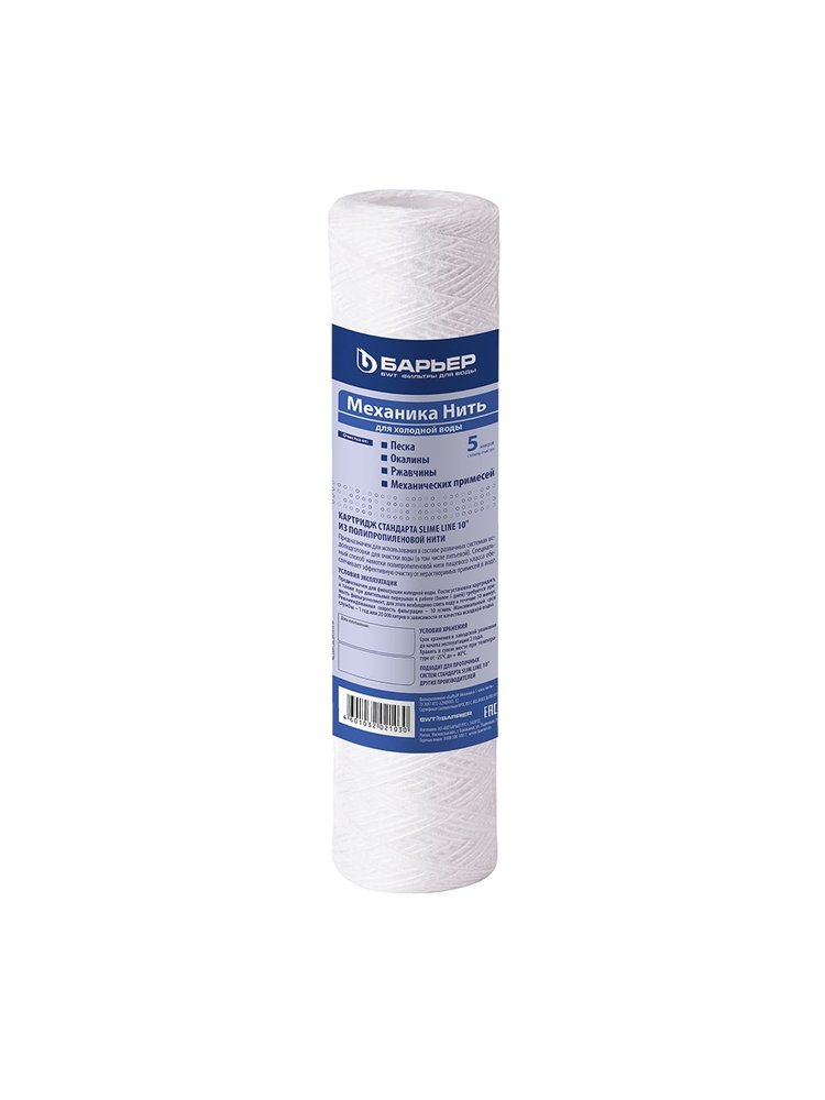 Картридж Механика Барьер Р111Р06 предназначен для очистки холодной воды от нерастворимых механических загрязнений размером более 5 мкм. Используется в системах водоподготовки для очистки воды (в том числе питьевой). Способен очищать до 10 литров воды в минуту. Используется в магистральных фильтрах Барьер ВМ стандарта Slime Line 10". Данная информация скопирована со страницы: https://www.vseinstrumenti.ru/santehnika/filtry-dlya-vody/smennye-katridzhi-i-kassety/dlya-magistralnyh-filtrov/barer/barer-kartridzh-mehannika-5-mkm-nit-vm-r111r06/ Фильтрующий модуль 5 мкм задерживает песок и ржавчину, продлевает срок службы техники, легкая замена, устойчив к загрязнениям, универсален.