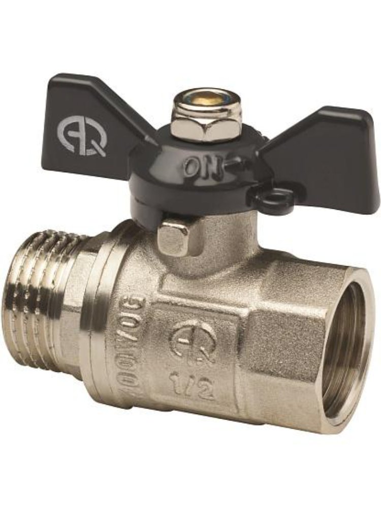 Кран шаровой Ду 20 ВР-НР бабочка латунь-никель Aqualink